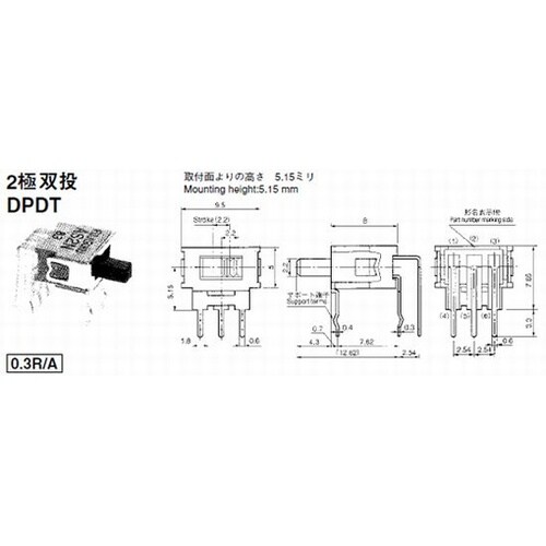 日本電産コパル電子の「超小型スライドスイッチ AS2N−6M−」は、品質と信頼性に優れた人気商品です。 |