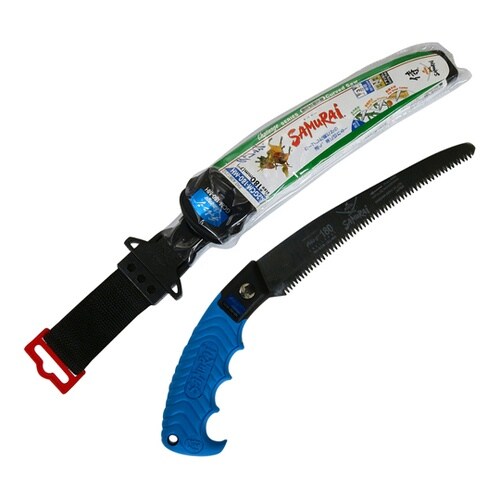 SAMuRAiブランドの神沢精工の特許曲刃鋸。直径50mm以下の枝の果樹剪定に適した鋸です。果樹剪定、造園剪定の使用に適しています。乾燥木材、アウトドアでの使用も可能です。 |