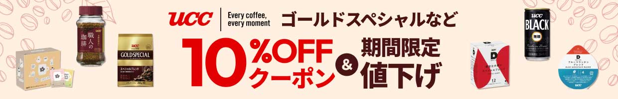 こちらのページに掲載のUCC商品が、ご購入時にクーポン利用で10%割引き!この機会にぜひお求めください。