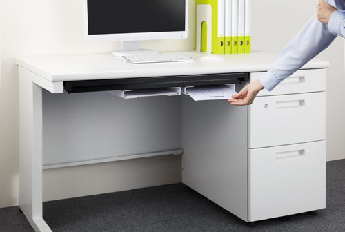 書類のちょっとした置き場に便利で、デスク下だけでなく側面に付けるのもおすすめです。