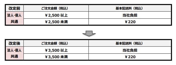配送料当社負担の注文金額基準改定のお知らせ