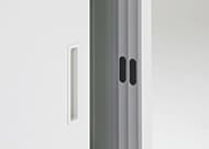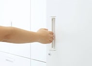 ユニバーサルデザインに配慮した大型の引き手は、握りやすく、扉の開閉もスムーズ。