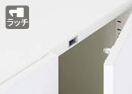 ラッチ機構を設けてあるため、地震の際に収納物が飛び出す事を防止します。