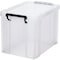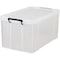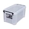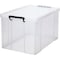 中身が一目でわかるクリアタイプです。丈夫な作りで積み重ねても安心して使用できます。フタをしっかり固定するダウンロック式です。縦横2方向から選択可能なキャスター付です。+もっと見る