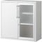 ポルト3木製ストレージシリーズ。洗礼されたホワイトと格調高いダークブラウンの引き戸タイプ収納棚。+もっと見る