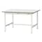 プラスドライバー1本で簡単組立!均等耐荷重500kgの中量作業台です。座り作業台におすすめの高さ740mm。天板種類は2種類、メラミン天板と塩ビシート天板をご用意。天板芯材は全面パーチクルボードでたわみにくく、脚部は角パイプ構造の丈夫な作業台です。足元のツナギ(カンヌキ)は後方にも取付可能で、天板下の空間を有効活用でき便利です。工場や倉庫、オフィスでの梱包、検品、検査、組立、仕分け作業等に。+もっと見る