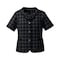 丸襟が清楚な印象のチェック柄オーバーブラウス。ベース生地はメッシュ組織の変形にして凹凸感のある表面感を再現。少し甘めに織ることで清涼感と軽さを出しています。