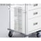 視認性のよいクリアな天板天板はクリアで引出し上段の確認が可能です。移動時のガタツキの少ない静音キャスターを使用しています。+もっと見る