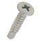 材質は鉄で三価クロメートめっき。十字穴付きのなべ頭タッピンねじで先端が切り刃になっています。この切り刃で鉄板に下穴をあけ、連動してタップ立て、締付けまでがドリルねじ一本で出来ます。