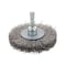 軸付きのホイール型ワイヤーブラシです。金属などの研削、研磨、バリ取り、サビ落としに使用できます。1/4(6.3mm)六角軸が付いており、電動ドライバーや電動ドリルに取り付けて使用可能です。