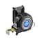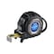 高さ測定に見やすいタテ目盛(裏面)付の両面目盛付。ダブルブレーキとショックアブソーバーがテープ収納時の衝撃を緩和。シリカコーティングで乱反射防止、鉛筆で文字が書ける高耐久テープ。耐久爪の4点鋲。