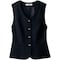 5面体の構築的なパターンでつくるメリハリの効いた4つボタンベスト。再生ポリエステルを28%使用し環境にも配慮。導電性繊維混紡でまとわりつきやホコリ付きを抑える。