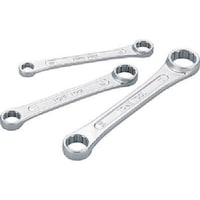 ストレートタイプの超ロングめがねレンチです。十二角タイプです。全長が長く、狭く奥まった個所での作業が容易です。超ロングストレートタイプで大きなトルクがかけやすくなっています。