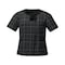 丸襟が清楚な印象のチェック柄オーバーブラウス。ベース生地はメッシュ組織の変形にして凹凸感のある表面感を再現。少し甘めに織ることで清涼感と軽さを出しています。