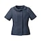 配色のボタンとトリミングがアクセントの夏向けオーバーブラウス。凸凹感のあるツイード調の素材を使用し、通常の生地よりも涼しく感じられて、清涼感があります。幅広い職種や年齢の方が着用可能です。
