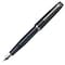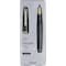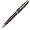 金属パーツがクールな雰囲気を醸し出す、ダークカラーのボディの万年筆です。中細のペン先なので、はじめての万年筆にも書きやすい太さ。