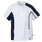 シャープなスタンドカラーにネイビーのラインを入れ、よりプロフェッショナルな雰囲気です。