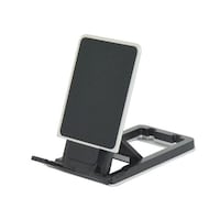 タブレット、スマートフォン対応の折り畳みスタンドです。端末との接触部分には、ゴム素材を使用しており、操作中の機材のズレを防ぎます。コンパクトに折りたたむことが可能なため、持ち運びにも便利です。
