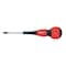 滑りにくく、力が入るスリット形状です。ハンマーで叩ける座金付です。力が入るボール形状とエラストマー樹脂ハンドルです。高精度ブラックポイント仕上げです。マイナスネジ回しに。