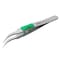 接合部のバネ性が軽く、長時間の作業に適しています。つまんだ品物が見やすい先曲ピンセットです。細かなパーツのつまみ作業に。