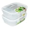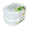 パッキン付の密封度の高いパスタ用容器一人前と二人前のバスタ計量用の2種類の穴開き内フタ付き透明なので中身がクリアに見えます。スッキリしたデザインなのでキッチンインテリアの一部としても活躍します。