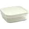 フタをしたまま電子レンジで加熱してそのままテーブルへ。透明なので保存状態も一目瞭然。積み重ねができて冷蔵庫でも活躍します。塩・酸に強く、匂いうつりがありません。