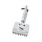 調節ノブを回すだけで簡単にチップ間隔を調整できるので、分注元と分注先の容器の切り替えが容易です。刻印されたスケールをもとに、間隔コントロールを96、48、24または12ウェルプレートに合わせられます。