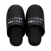 靴のまま履けるスリッパです。用途が分かるよう足の甲部分には「シューズのままお履きください」と印字されています。トイレだけでなく、ギプスをしたままでも履くことができます。ポリ塩化ビニル素材なので汚れても+もっと見る