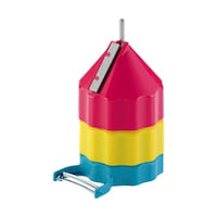 鉛筆けずりのように、くるくる野菜を回してスライスします。刃は内側に付いているので、お子様でも安心してお使いになれます。三種類の刃と、便利なオプションのついた6点セットです。使用しないときは専用のスタン+もっと見る