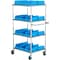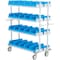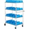 ステンレスパイプをジョイント金具で組み上げたミキシングカート。ジョイント金具を調節し、棚板や取手の位置を変更できます。そのままの状態で、施用未実施を目視で確認できます。