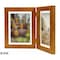 内面に金色のアクセントを施し、Vカット台紙を使用した高級感あふれる木製フレームです。落ち着いた色調はインテリアに馴染むので、ギフトとしてもオススメです。スタンド付きです。