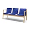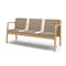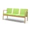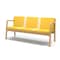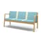 特徴的なアーム形状と座面の奥行を少し浅くすることで患者様の立ち上がりを補助するソファ。張地の張り分けによって各座面の着座位置が視覚化されているため、座面の占有を防止できる。