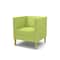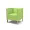 特徴的なアーム形状と座面の奥行を少し浅くすることで患者様の立ち上がりを補助するソファ。張地の張り分けによって各座面の着座位置が視覚化されているため、座面の占有を防止できる。+もっと見る