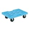 荷物の大きさに合わせ、縦横に何台でも連結できる平台車です。積載板には滑り止めゴム、4方に持ち手穴を有しています。