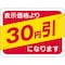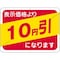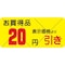 食品スーパー店頭での生鮮品セールや、酒販店・衣料品店などでの特売表示に最適な割引きシールです。値引きする商品のプライスカードや値札、商品本体などに貼り付けてご使用ください(一般強粘着です)。