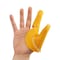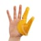 噛まれやすい2本の指をしっかりガードします。ディスポグローブの下に装着できるので、清潔です。