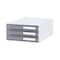 ユニット式で本体の上下または側面の凹凸を差し込み、卓上型から大型まで自由に組立てできます。トレーの抜け落ち防止機構が付いています。