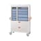 多種多様な医療材料を効率的に収納できる搬送用カート。カギ付きシャッターで盗難防止に適しています。
