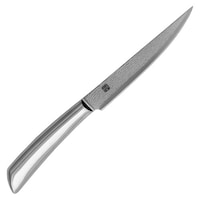 果物や野菜の皮むきなど、細かい作業に適したペティナイフです。 見た目にも美しい波紋のダマスカス包丁です。 刃先を当てるだけで、柔らかくて切りにくいトマトも、気持ちいいぐらいにスッと切れます。