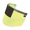 安全性・作業性を考えたシールド形状。(邪魔にならない長さ。)眼鏡をしたままでも使用可能。シールドの上げ下げが可能。(不要なときは上部にサッと上げるだけ。)溝付・溝無しヘルメットに装着可能。紫外線を99