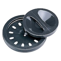 シンクに欠かせない排水口用のフタ付きプレート。汚れに強く丈夫なステンレス製。回転式のフタで大きなゴミや、スプーン・フォークなどを誤って排水口に流してしまうのを防ぎます。