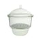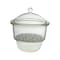蓋と本体とも減圧に耐えるよう肉厚にできています。磁性の中板が付属しています。中板の下、本体底部に乾燥剤を入れて使用します。減圧ポンプに接続し、減圧状態で乾燥、保存することができます。