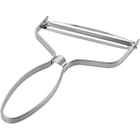野菜の丸みに合ったカーブ刃でスピード調理。ジャガイモの芽取りもできます。清潔でサビにくい、オールステンレス製。
