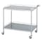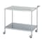 組立式。耐食性に優れたSUS304製ワゴン。二段式。片側ハンドル。下棚位置変更可(25mmピッチ)