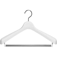特殊ラバー加工で、ハンガーに掛かりにくい衣類でも吸い付くようにピタッと掛けられます。厚みがあるハンガーなので、ジャケットやコートなどのフォルムを崩しません。クリップ付きで、ボトム衣類も掛けられます。