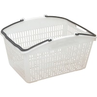 従来品のカゴと比べ、山なりのフォルムになっています。中央部の深さを持たせながら、投入部分が低くなることで、商品の出し入れをしやすくします。スーパーマーケットなどでのお買い物に。+もっと見る