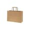 ハンドルは一般的な平紐の幅10mm幅よりも太めの12mm幅を採用しているので、手にやさしく持ちやすい紙袋です。オーソドックスなクラフト無地なので、催事など色々な用途でご使用頂けます。