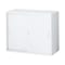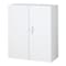 スチール製で丈夫な器具保管庫、両開戸。飛散防止ガラス戸で中の安全を確保。