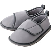 ちょっとした段差や滑りやすい床での転倒予防に配慮したシューズです。脱ぎ履きがしやすい面ファスナー式です。つま先つきタイプです。
