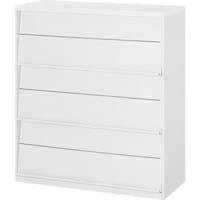 一箇所のロックで全ての引出しが同時に施錠できるオールロック機構を採用しています。引出しを引くだけで、書類が見つけ出せます。むだのない統一のとれたファイリングが可能です。